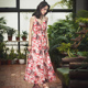 沙滩裙波西米亚裙子女夏2017新款雪纺连衣裙海边度假吊带碎花长裙