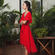 雪纺大红色连衣裙夏旅游裙子中长款沙滩裙三亚旅游衣服海边度假裙