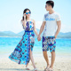 海边度假情侣装夏装蜜月爱情套装吊带连衣裙波西米亚沙滩长裙显瘦