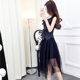 夏季气质女装一字领连衣裙短裙子露肩收腰显瘦夜店性感小黑裙潮
