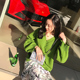 MARYME2017春装新品俏皮醒目奇异果绿V领喇叭袖百搭针织衫毛衣女