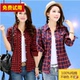 春季新款纯棉磨毛格子衬衫女装中长款修身显瘦学生短袖外套防晒衣