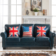 美式真皮沙发 简约欧式客厅复古怀旧实木蓝色油蜡皮三人位沙发