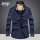 jeep春秋新款男士长袖衬衫秋季纯棉男衬衣大码休闲军装寸衫