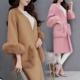 2016秋冬新款韩版女装圆领棉衣中长款修身狐狸毛大衣气质外套女