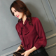 春秋女装韩范长袖雪纺衫绸缎丝质上衣衬衫T恤打底衫百搭衬衣白色