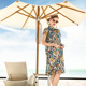 2017夏季大码中长款宽松七分袖花色欧洲站端庄优雅淑女真丝连衣裙