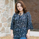 可俪轩2017新款淑女春装五分百褶袖雪纺碎花深V领大码200斤女上衣