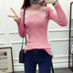 秋冬天薄款紧身针织衫女套头长袖修身中长款网纱拼接蕾丝打底衫