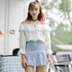 2017春装露肩上衣学生漏肩一字领娃娃衫灯笼袖一字肩半袖t恤女装