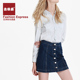 古田森夏季蓝色牛仔裙中腰半身裙a字裙女单排扣包臀A短裙潮