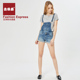 古田森2017背带裤短裤女夏牛仔短裤女裤脚卷边两穿可拆卸背带短裤
