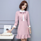 春装新款 娃娃领连衣裙 七分袖中长款包臀鱼尾裙