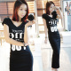 性感低胸紧身印花字母包臀连衣裙女夏季纯棉休闲中长短袖t恤短裙
