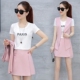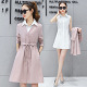 2017夏季新款女装短袖衬衫无袖背心系带连衣裙休闲时尚两件套装潮