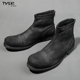 意大利手工复古男靴时尚英伦风做旧真皮短靴侧拉链套脚休闲皮靴男