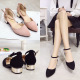 2017夏季新款韩版包头中空女鞋时尚尖头一字扣带低跟镂空女凉鞋