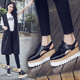 2017夏季新款英伦风女鞋牛仔布厚底松糕中跟学生魔术贴罗马凉鞋女