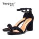 月芽儿2017夏新款高跟凉鞋女 粗跟羊反绒露趾黑色女士一字带凉鞋