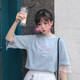 韩版夏季新款女装圆领拼接网纱短袖印花T恤女纯色宽松上衣打底衫