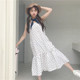 韩版复古粗肩带雪纺长款鱼尾裙 韩风吊带波点宽松连衣裙无袖夏潮