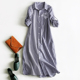 N3978大码福利 新款格纹印花棉质复古文艺连衣裙衬衣裙好穿百搭