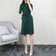 N4039 欧美精品2017春季新款真丝圆领七分袖连衣裙名媛中长款女装