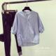 2017春夏新款韩版五分袖宽条纹衬衫女宽松显瘦学院风前短后长衬衣