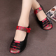 2017春季新款民族风女鞋平底中老年妈妈单鞋圆头软底浅口印花皮鞋