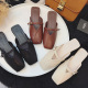 韩版平底拖鞋女夏时尚一字扣包头半拖鞋方头简约复古防滑外穿凉拖