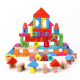 八宝豆豆 100粒宝宝学习汉字数学积木桶装高档实木早教益智玩具