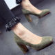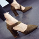 欧美时尚女鞋子2017春夏新款尖头鞋绒面粗跟中高跟鞋魔术贴单鞋女