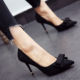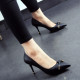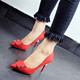 韩版2017春秋新款气质尖头细跟高跟鞋甜美蝴蝶结单鞋女鞋黑色红色