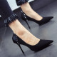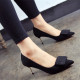 细跟高跟单鞋韩国公主简约绒面尖头鞋糖果色低帮鞋小码OL黑色女鞋