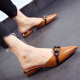 2017夏季新款欧美尖头鞋金属扣平底鞋凉鞋一字拖鞋凉拖鞋女半拖