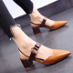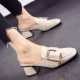 2017夏季新款欧美中跟鞋尖头帅气金属皮带扣粗跟高跟鞋凉鞋女OL
