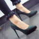 2016韩版性感细跟绒面高跟鞋职业尖头防水台高跟鞋女黑色浅口单鞋