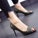 韩版2017春夏新款性感鱼嘴单鞋黑色浅口细跟高跟鞋气质女鞋红婚鞋