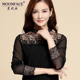 茉妃丝2017春装新款蕾丝打底衫 女装立领亮片网纱打底衫上衣长袖
