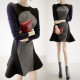韩国代购女装2017春夏新款韩版小香风明星同款修身打底长袖连衣裙