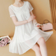 大码女装2017新款雪纺连衣裙胖mm韩版宽松镂空短袖a字裙子春夏季
