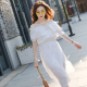 2017夏季新款韩版高腰气质白色一字肩连衣裙小清新一字领漏肩长裙