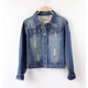2017春秋季韩版浅色水磨修身破洞休闲牛仔外套长袖女短款上衣潮