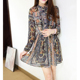 韩国代购2017秋冬新款翻领单排扣碎花雪纺连衣裙女长袖打底