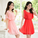 纯色中长款大码胖MM连衣裙2016春装新款雪纺夏装显瘦短袖女装裙子