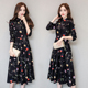 2017新款女装春装修身收腰中长款连衣裙女名媛显瘦印花打底长袖裙