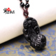 宁逸正品五帝开光乌金黑曜石貔貅吊坠项链男款皮丘貔貅吊坠项坠