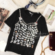 THEONE2017韩版春夏新款仙鹤亮片钉珠刺绣女装宽松短袖简约T恤女