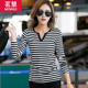 2017春装新款女装外穿条纹春秋季上衣服打底小衫女士V领长袖t恤潮