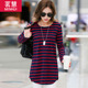 春秋装新款大码女装外穿中长款学生打底衫秋衣上衣服长袖条纹T恤